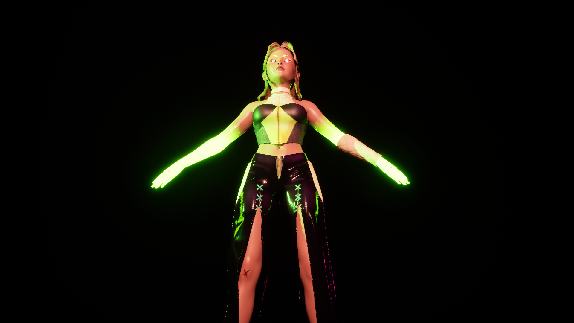 Diseño de personaje y colocación en Unreal, creado en Daz, modificado en Blender, vestido en Marvelous y texturizado en Substance Painter.